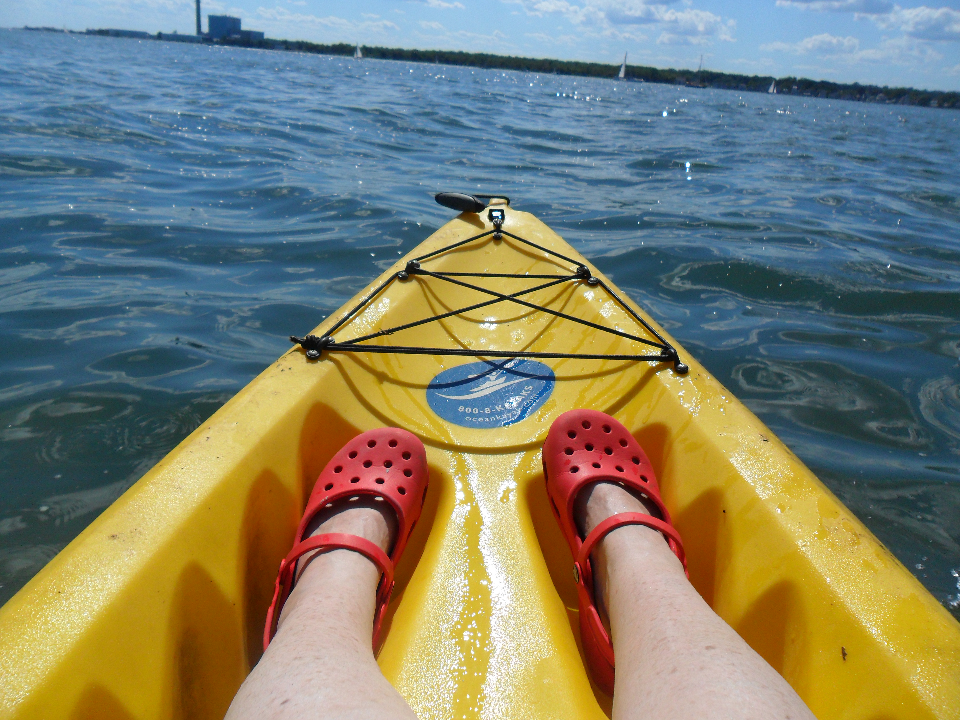 High tide was 3 PM yesterday and we launched the kayak out of Calf Pasture beach – my first trip of the season. There was a steady wind pushing us out towards the islands. We let ourselves get blown from shore, lolling lazily on the heaving tide. After an hour or so, we paddled back. We barely spoke.  A meditation beneath the passing clouds on lapping waves. Bliss.